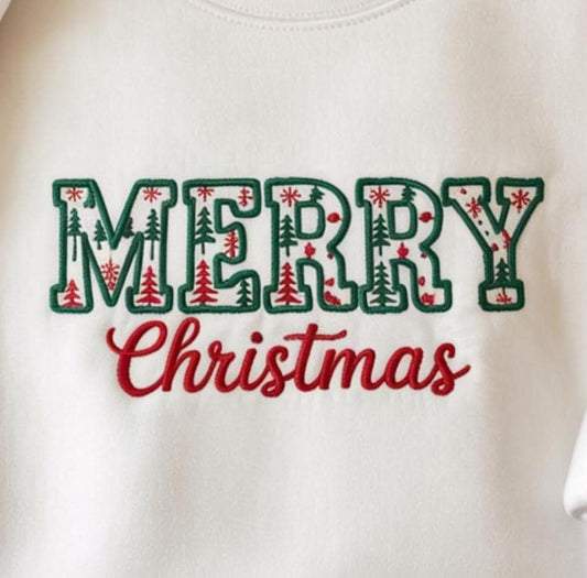 Merry Christmas Embroidered Sweatshirt | Retro Vintage Holiday Crewneck | Festive Christmas Jumper | Cozy Xmas Hoodie